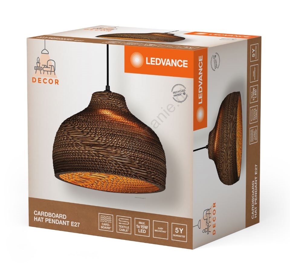 Ledvance - Hanglamp aan een koord DECOR CARDBOARD 1xE27/15W/230V diameter 36 cm kenmerkt een mooi en functioneel ontwerp.  Voor het licht is een lamp met E27 fitting geschikt. Hier kunt u andere lampen tegen voordelige prijzen kopen. U heeft een interessante aanwinst voor uw woning.