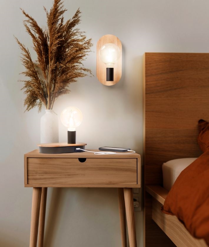 Ledvance - Touch-tafellamp met USB-aansluiting DECOR WOOD 1xE27/8W/230V rubberboom