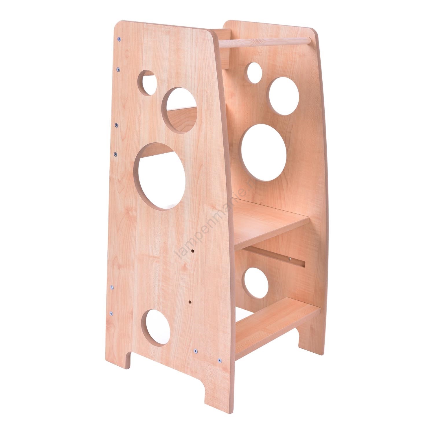 • De leerzame toren is een multifunctionele kruk die kinderen de mogelijkheid biedt om deel te nemen aan diverse creatieve activiteiten bij het keukenblad of bureau.
