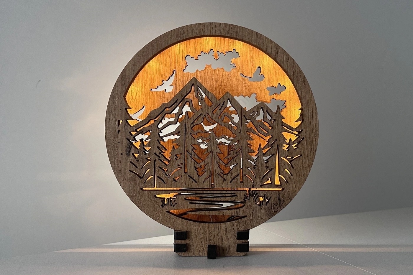 Li-Go 23583/DUB2 - Dimbare LED-tafeldecoratie LED/12W/230V 20x22 cm eikenhout/Bergen en bos