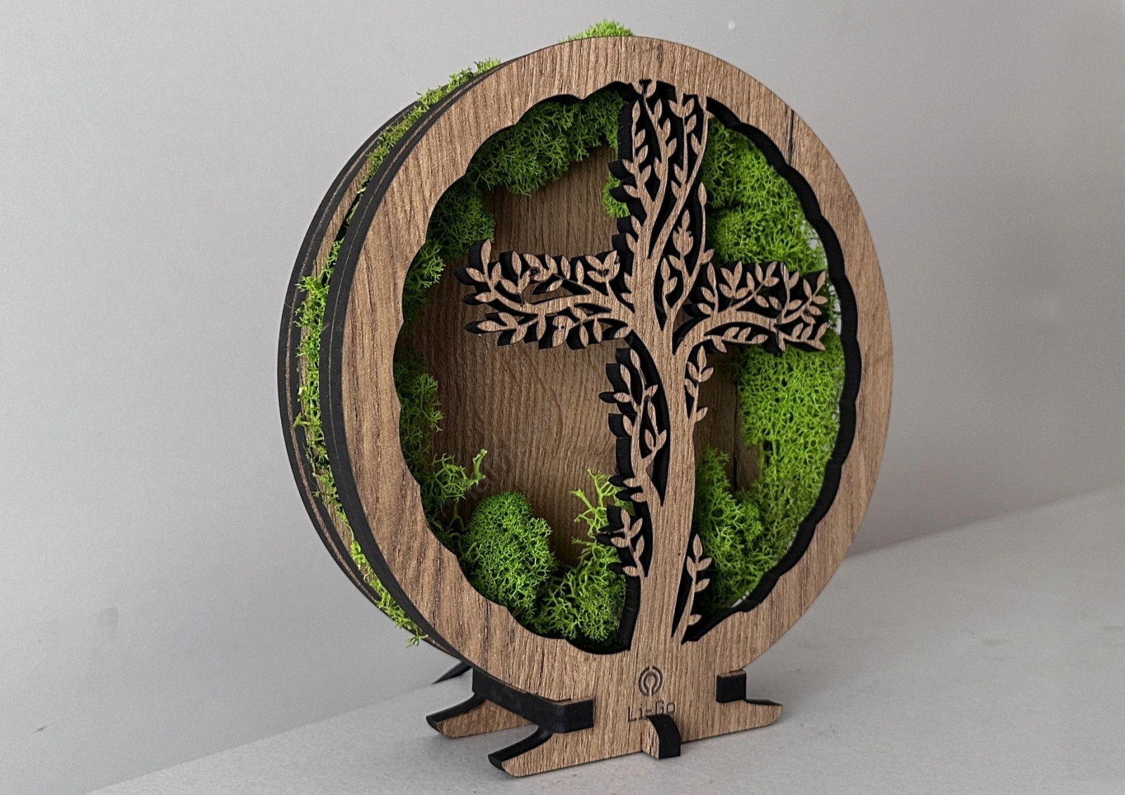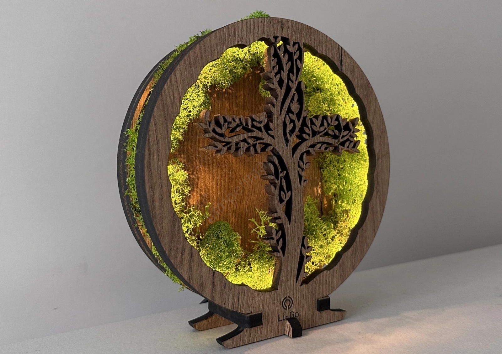 Li-Go 23622/DUB2 - Dimbare LED-tafeldecoratie LED/12W/230V 20x22 cm eiken/Kruis in mos