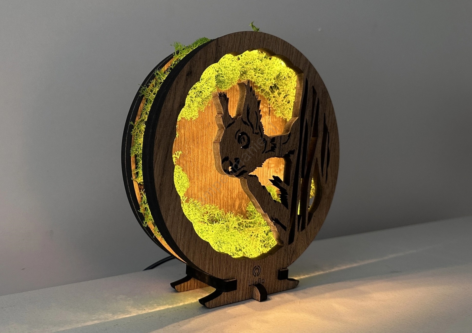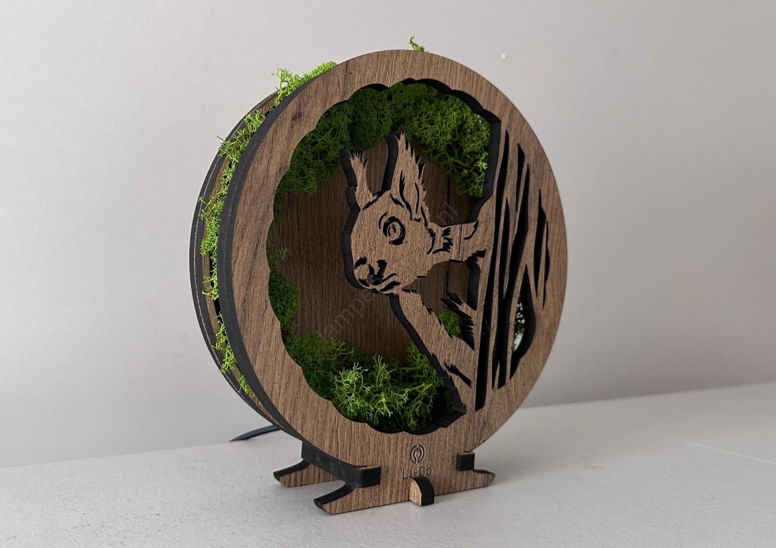 Li-Go 23625/DUB2 - Dimbare LED-tafeldecoratie LED/12W/230V 20x22 cm eiken/mos-eekhoorn
