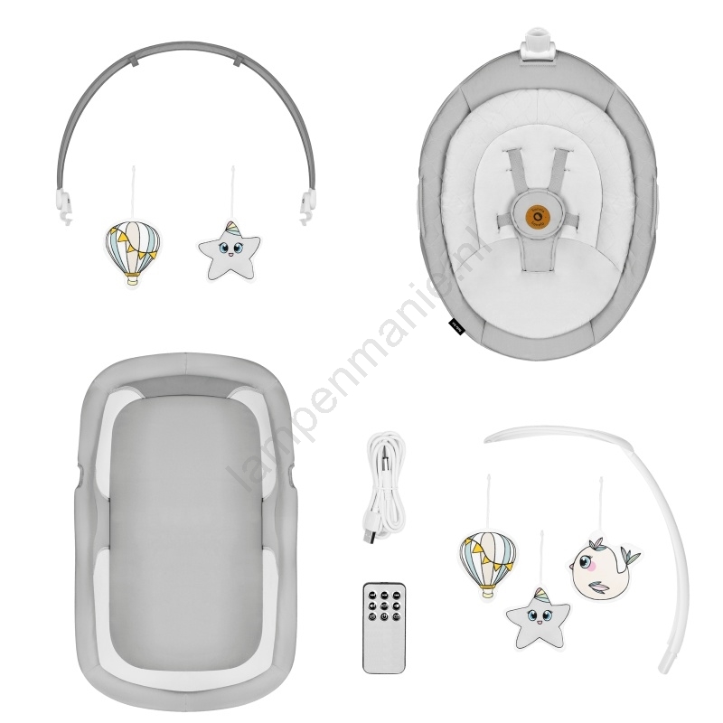 • Lionelo - Babyschommel met melodie 2-in-1 BELLA 4xAA Betongrijs + afstandsbediening