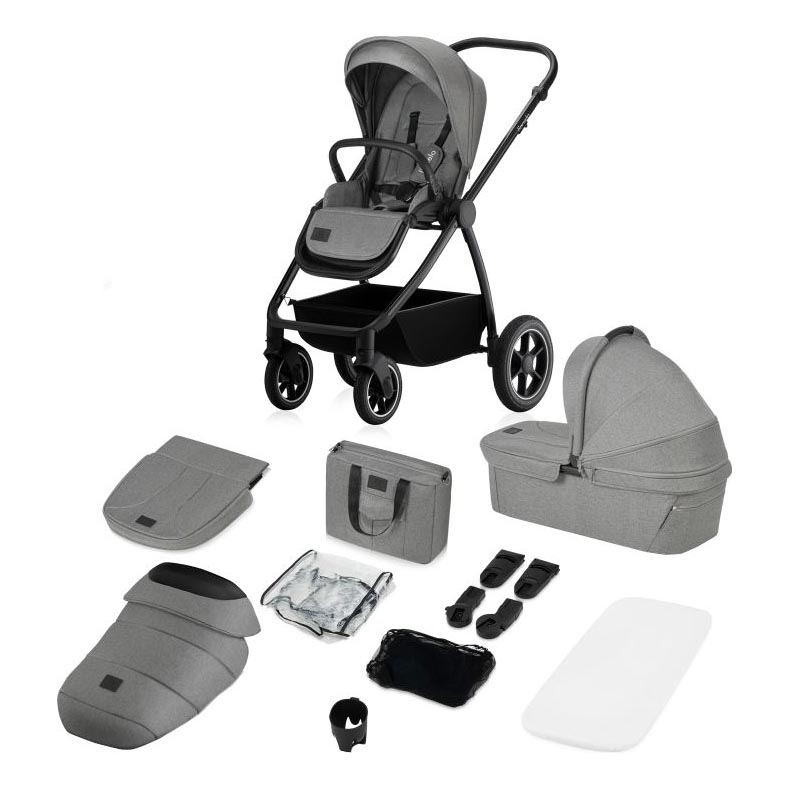• Accessoireset: voetenzak, muggennet, wieghoes, regenhoes, oudertas, bekerhouder, vergrendelbare mand.