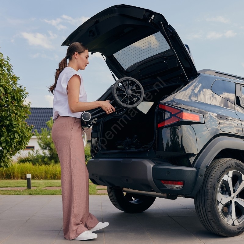 • Onderhoudsvrije all-terrain wielen (diameter 20 en 27 cm) met vering, hoge wendbaarheid, eenhandig duwen mogelijk.