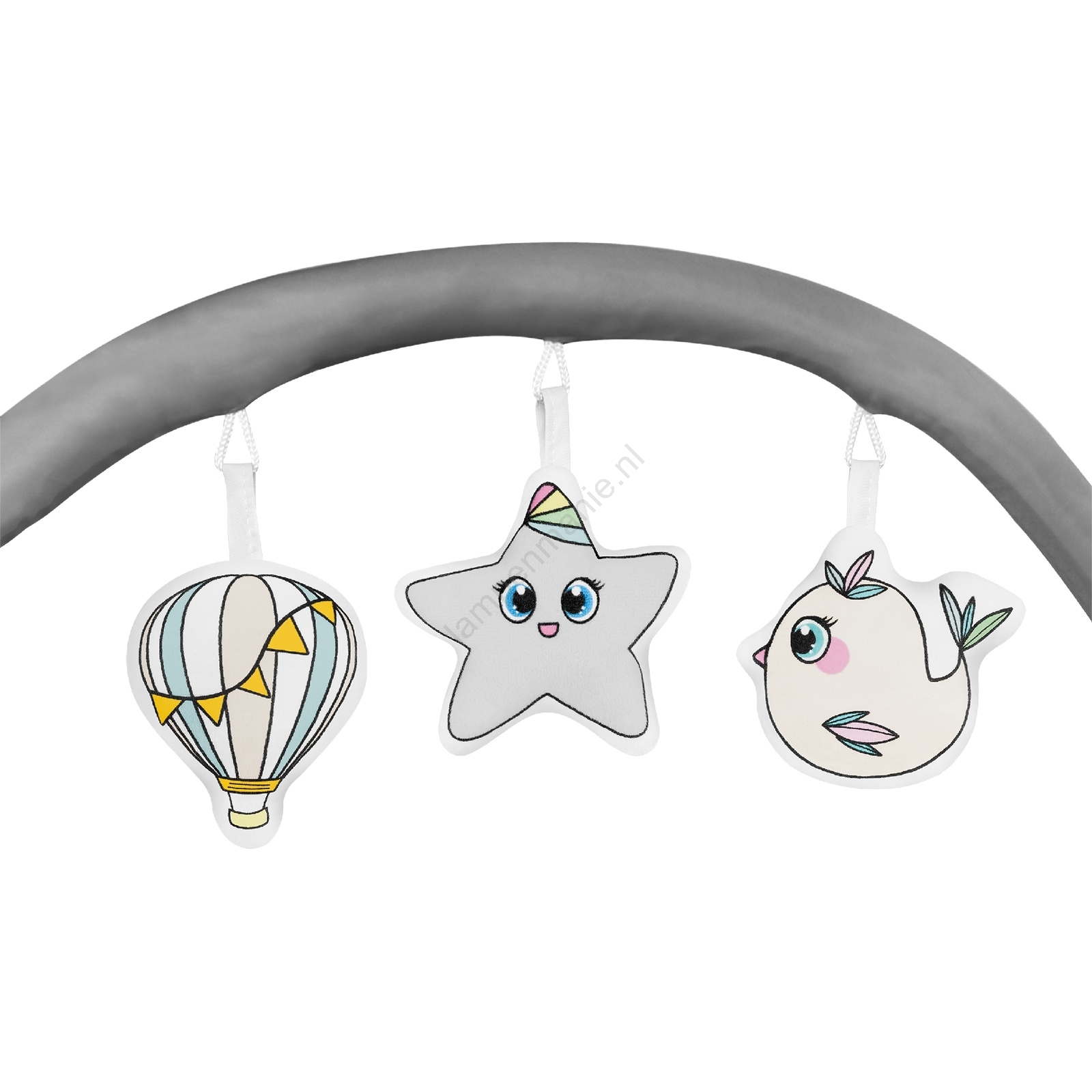 • Speeltjes aan een afneembare boog stimuleren aandacht en activiteit en bevorderen de motorische ontwikkeling.