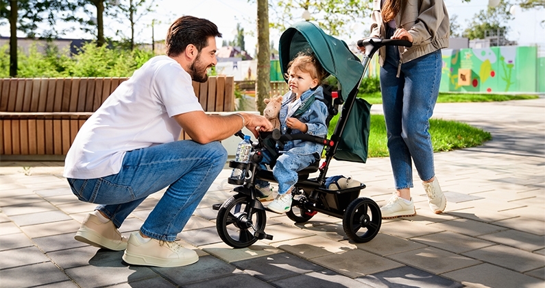 • HAARI is een driewieler met vrijloopfunctie, een uitstekend alternatief voor een traditionele kinderwagen.