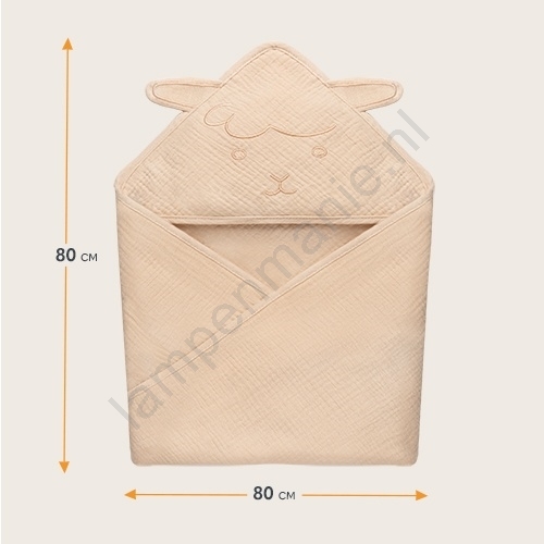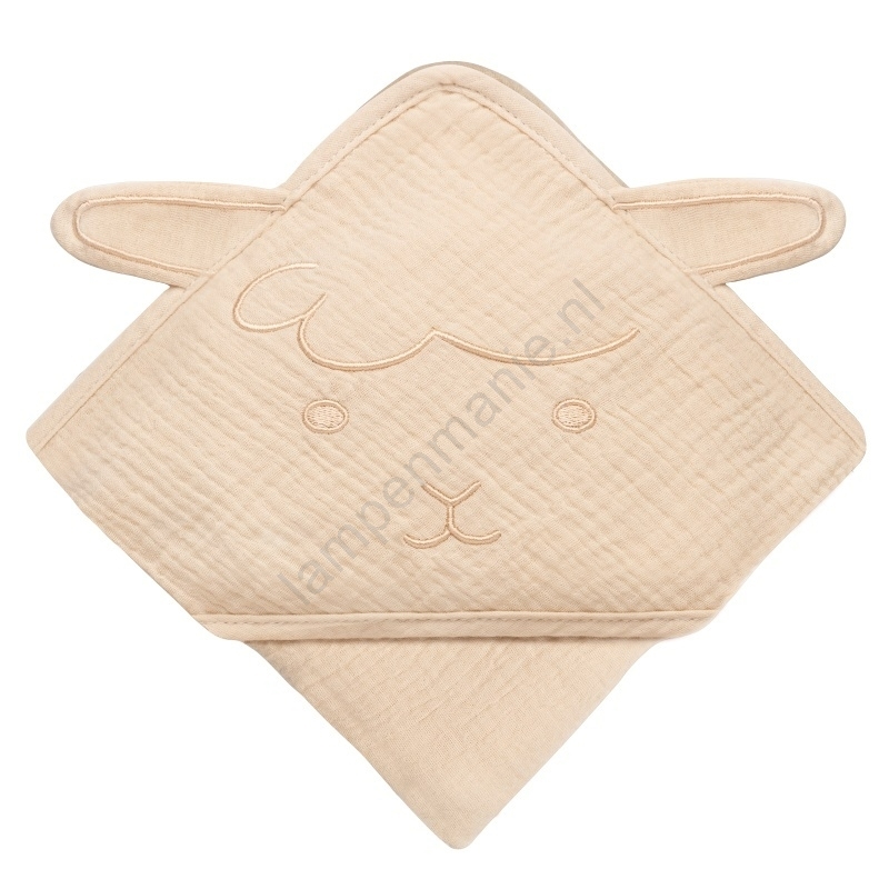 Lionelo - Kinderbadcape met capuchon van mousseline Beige zand