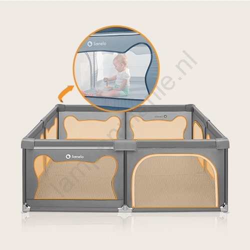 • De afmetingen van de omheining bieden voldoende bewegingsvrijheid voor rollen, kruipen en de eerste stapjes zonder het risico de ruimte te verlaten.