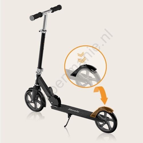 • De rem op het achterwiel geeft snel controle over de snelheid en fungeert tegelijkertijd als praktische spatlap.
