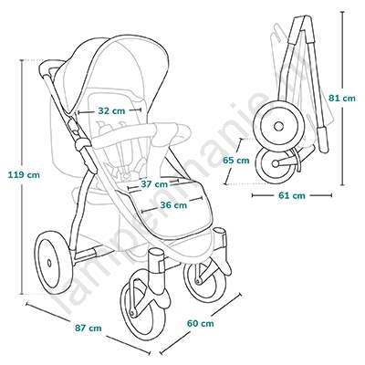 • De kinderwagen is voorzien van opbergruimte voor boodschappen of speelgoed.