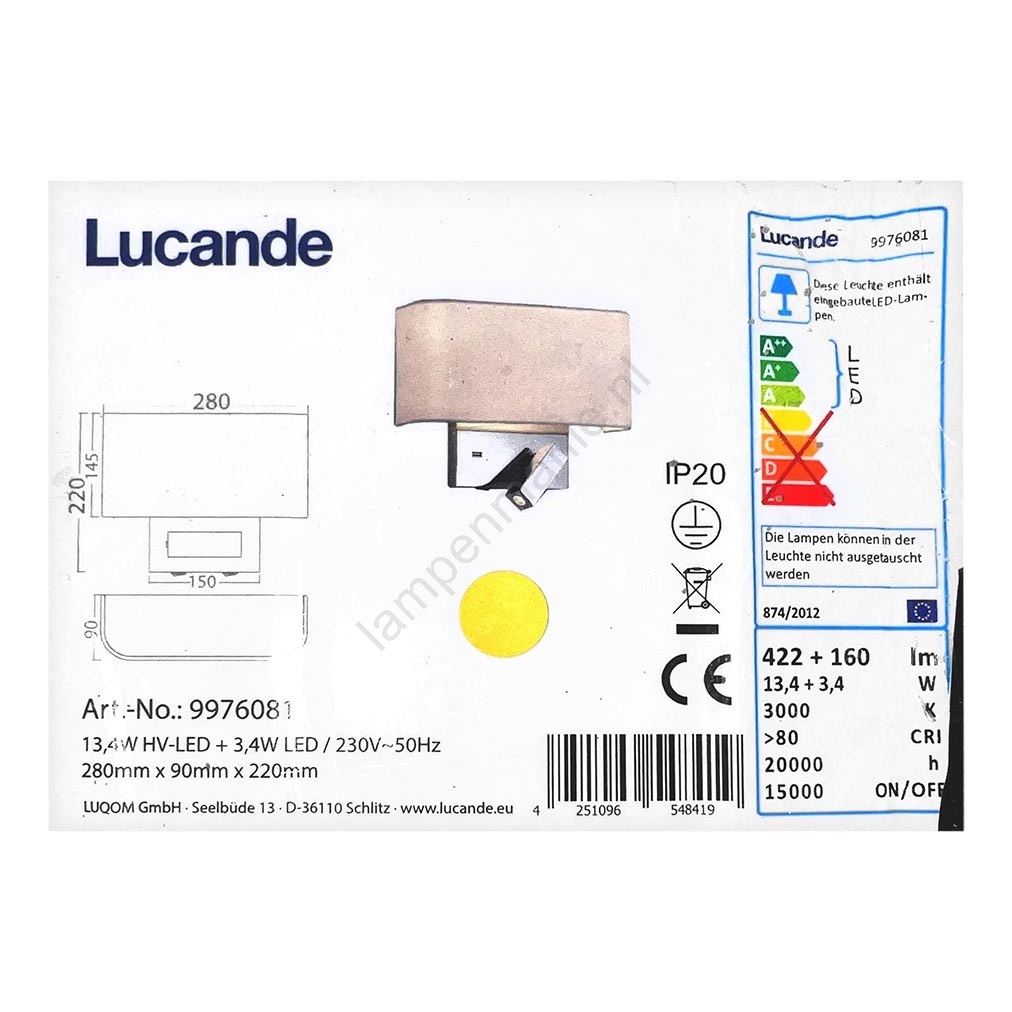 De lamp is een geretourneerd artikel, maar is gecontroleerd en volledig functioneel. Als het product defecte lampenkappen bevatte, zijn deze vervangen door nieuwe, evenals bijvoorbeeld ontbrekende aansluitkabels zijn aangevuld en instructies zijn toegevoegd. De lamp vertoont geen duidelijke gebreken. Koop een prachtig verlichtingsaccessoire voor een absoluut onverslaanbare prijs!