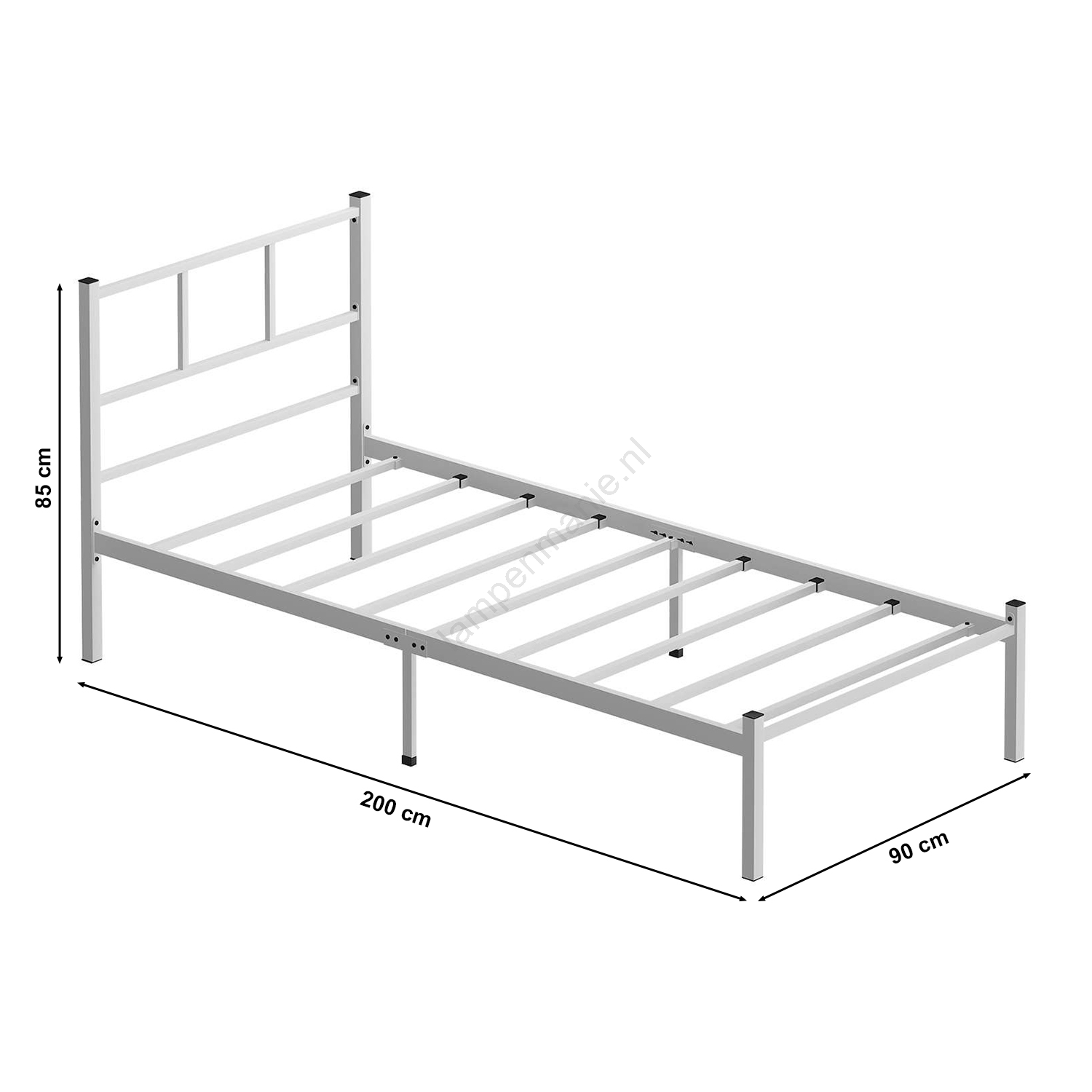 • Metalen eenpersoonsbed ROVAN 90 x 200 cm, wit, max. belasting 120 kg