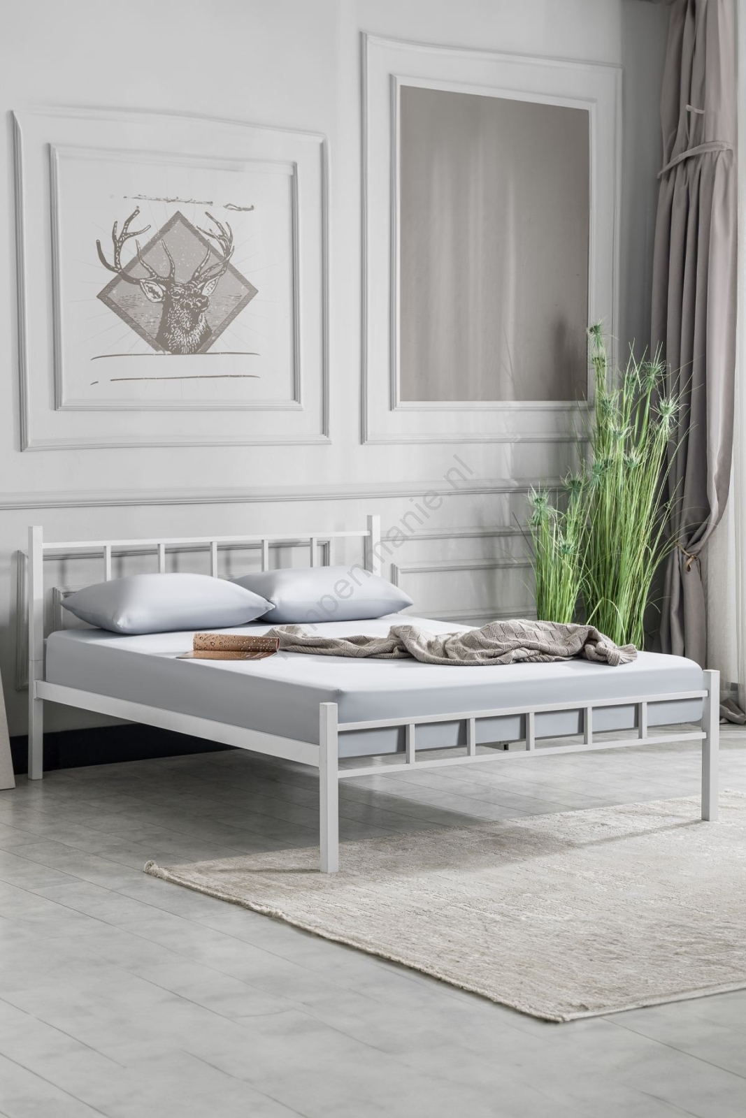• Metalen tweepersoonsbed ORMEL 120x200 cm, wit, draagkracht 120 kg