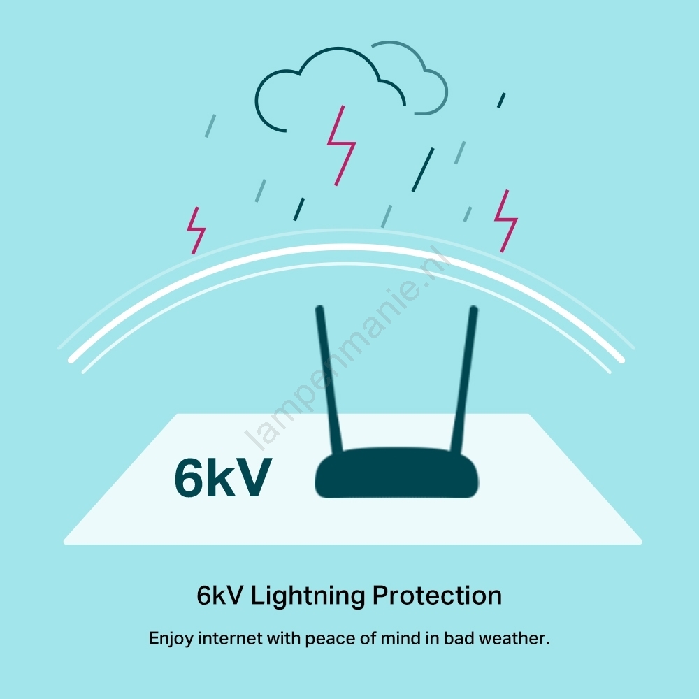 • Ondersteunt de Wi-Fi 4-standaard in de 2,4 GHz-band met draadloze snelheden tot 300 Mb/s, ideaal voor gewoon internetten, streamen en het thuisnetwerk.