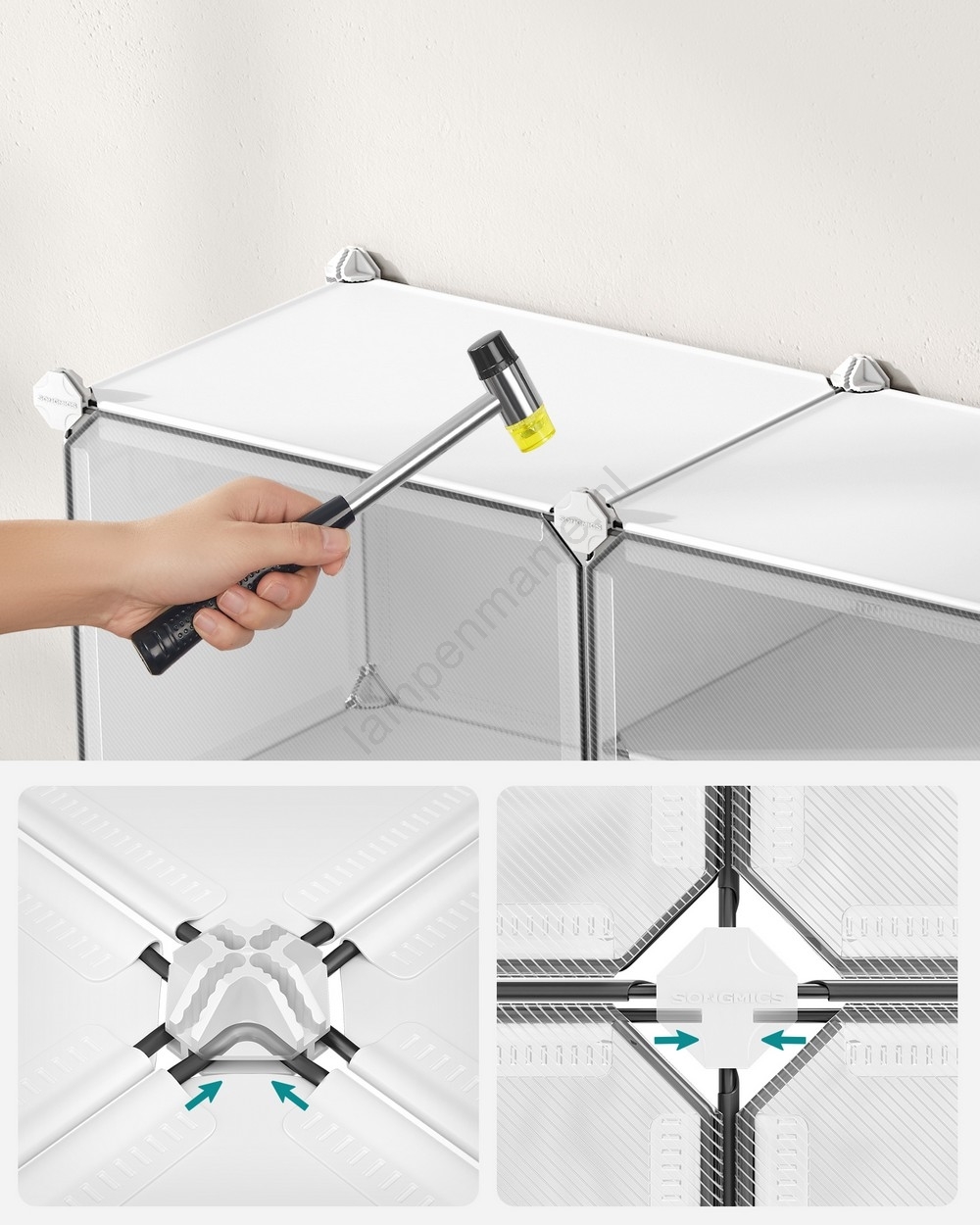 • Maak er losse modules van, of deel het zelfs op in 2 kleine rekken voor het ordenen van schoenen, kleding of toiletartikelen, in de badkamer of elke andere gewenste ruimte.