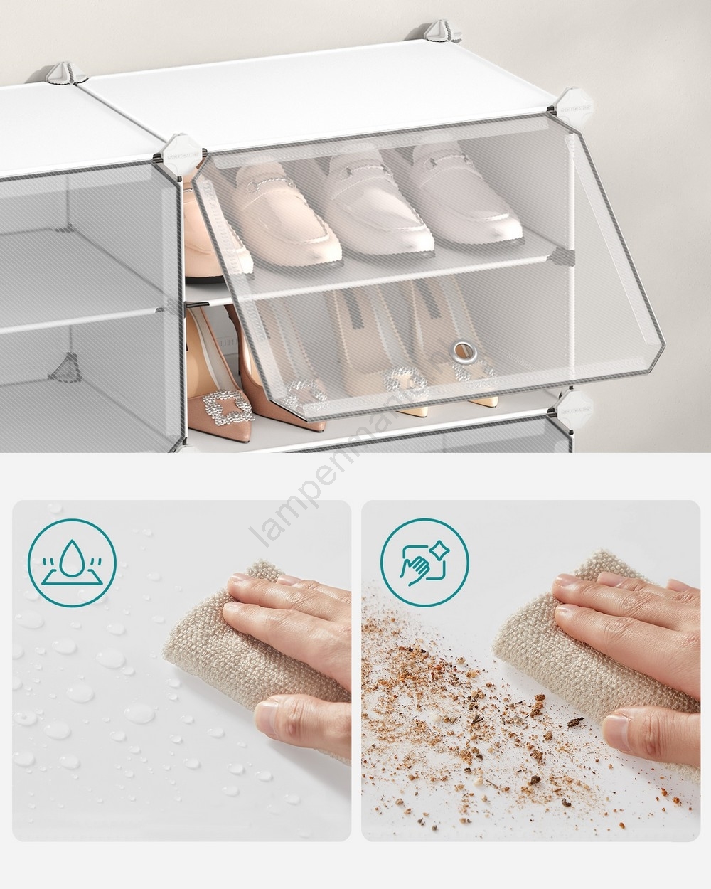 • Elk compartiment van deze schoenenkast is vervaardigd uit hoogwaardige verbindingsstukken, kunststof panelen en stevig stalen draad en kan tot 5 kg dragen.