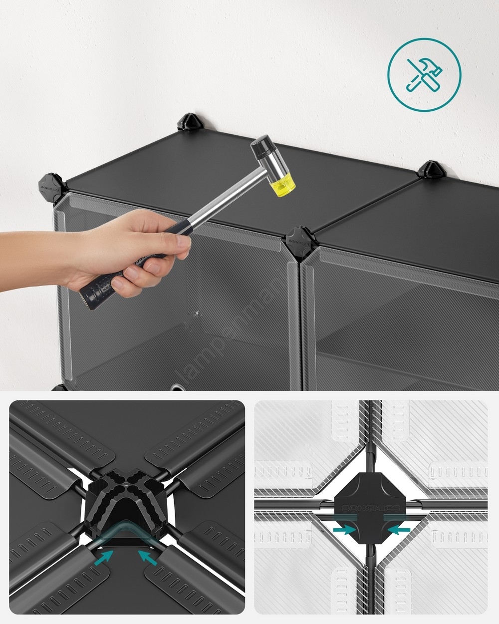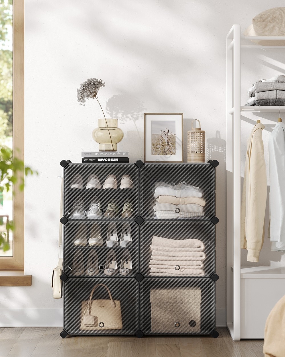 • Maak er losse units van of deel de kast zelfs op in 2 kleine planken om schoenen, kleding of toiletartikelen in de badkamer of in elke andere gewenste ruimte te ordenen.
