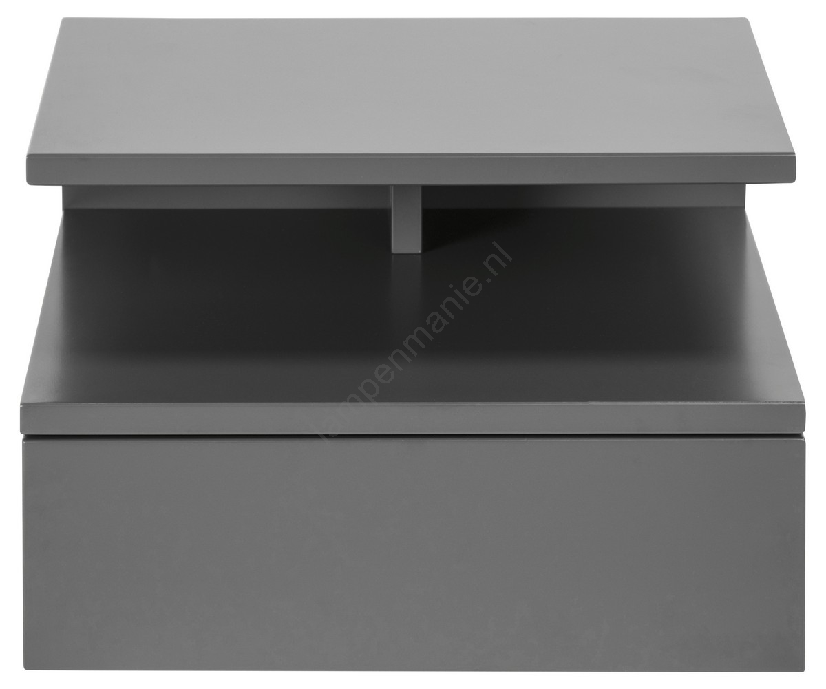 • Blad, frame, lade en plank van grijs UV-gelakt MDF, volledig uittrekbaar, open vak en wandmontage.