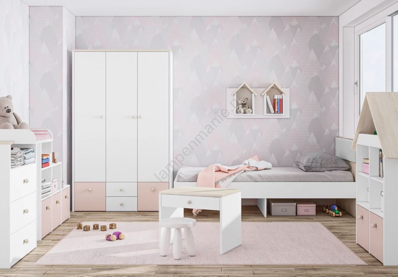 • Uitgevoerd in beukenkleur en wit.