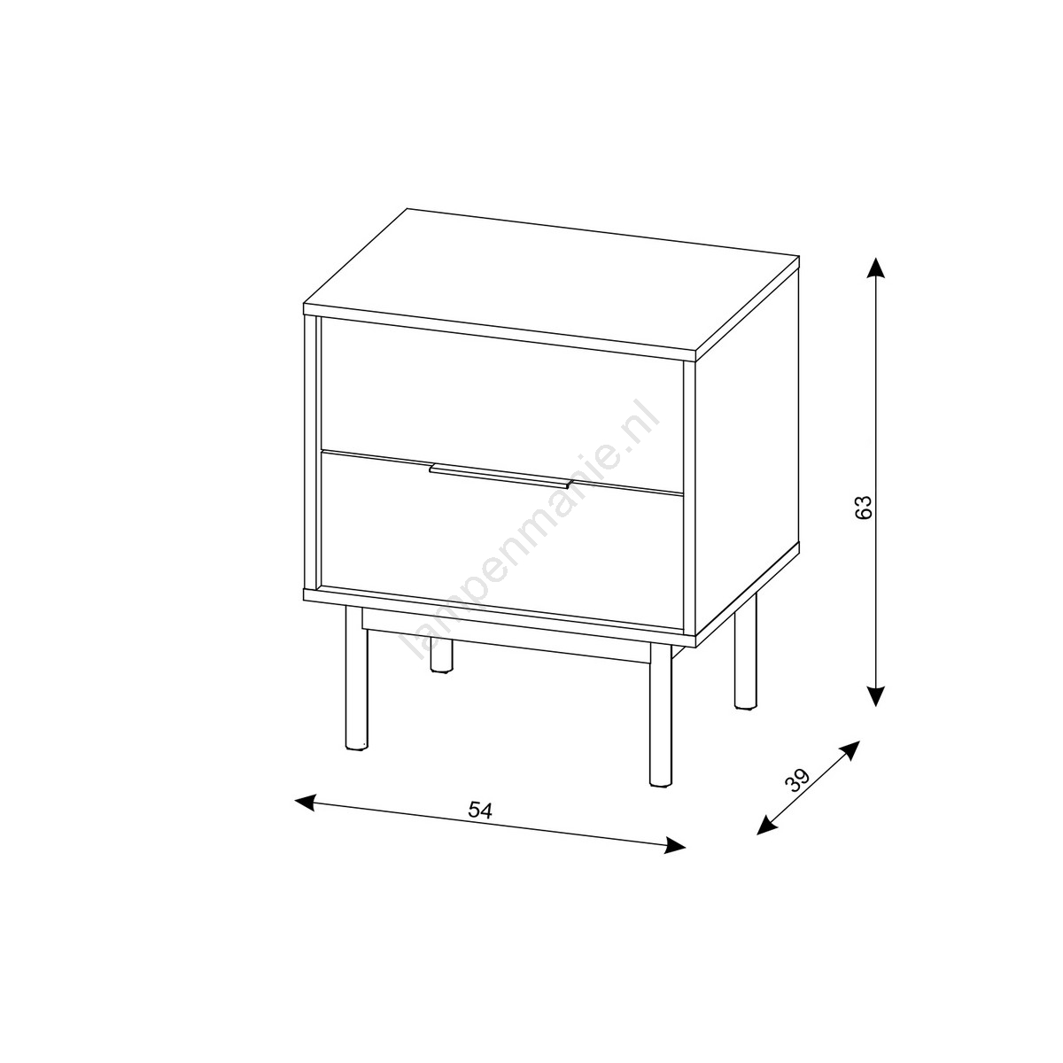 • Het heeft twee lades: de onderste lade met handgreep en de bovenste lade zonder handgreep voor een minimalistische en strakke uitstraling.
