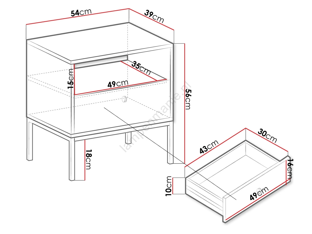 • Nachtkastje.