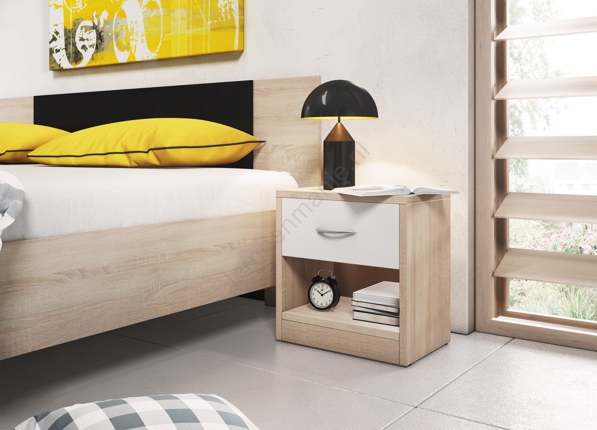 • Het heeft twee laden, de onderste lade met handgreep en de bovenste lade zonder handgreep voor een minimalistische en strakke uitstraling.