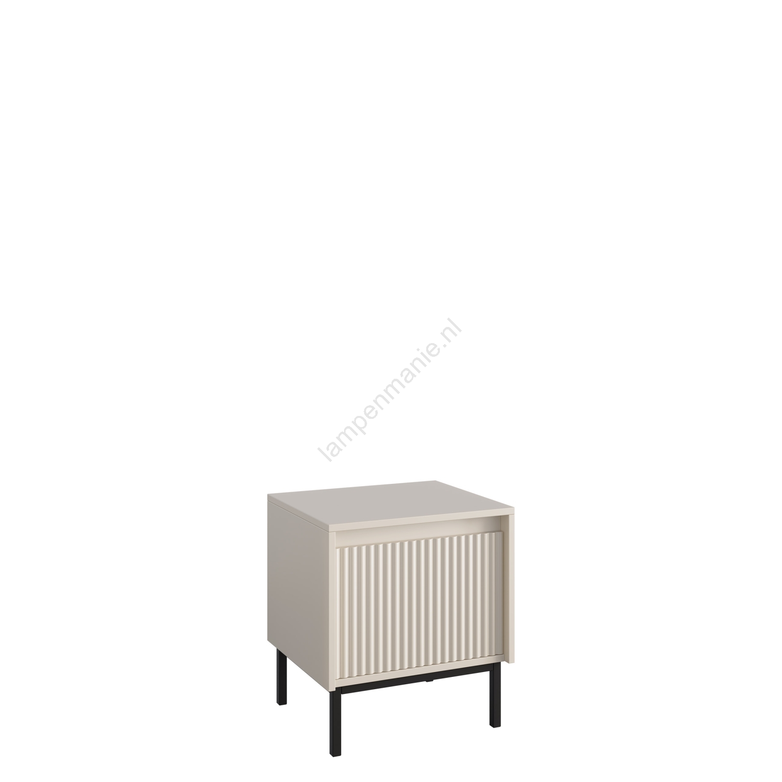 • Het nachtkastje is uitgevoerd met een stabiele metalen constructie en pootjes in contrasterend zwart.