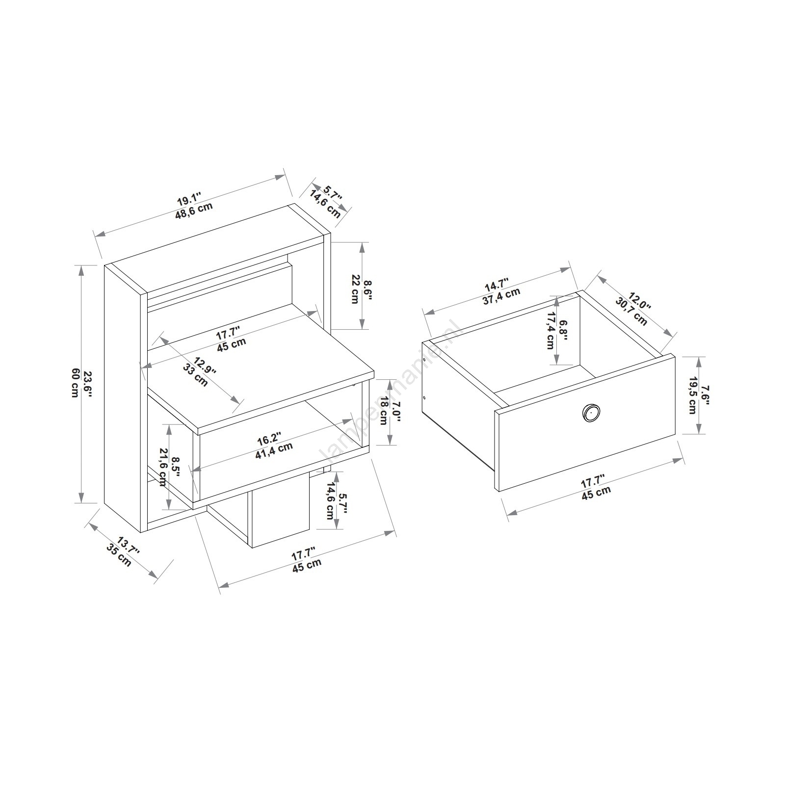 Onze producten zijn gemaakt van hoogwaardige spaanplaat, die sterkte en stabiliteit combineert. Bij dit materiaal kunnen kleine kleurverschillen optreden, wat het natuurlijke ontwerp en het unieke karakter van elk product onderstreept.