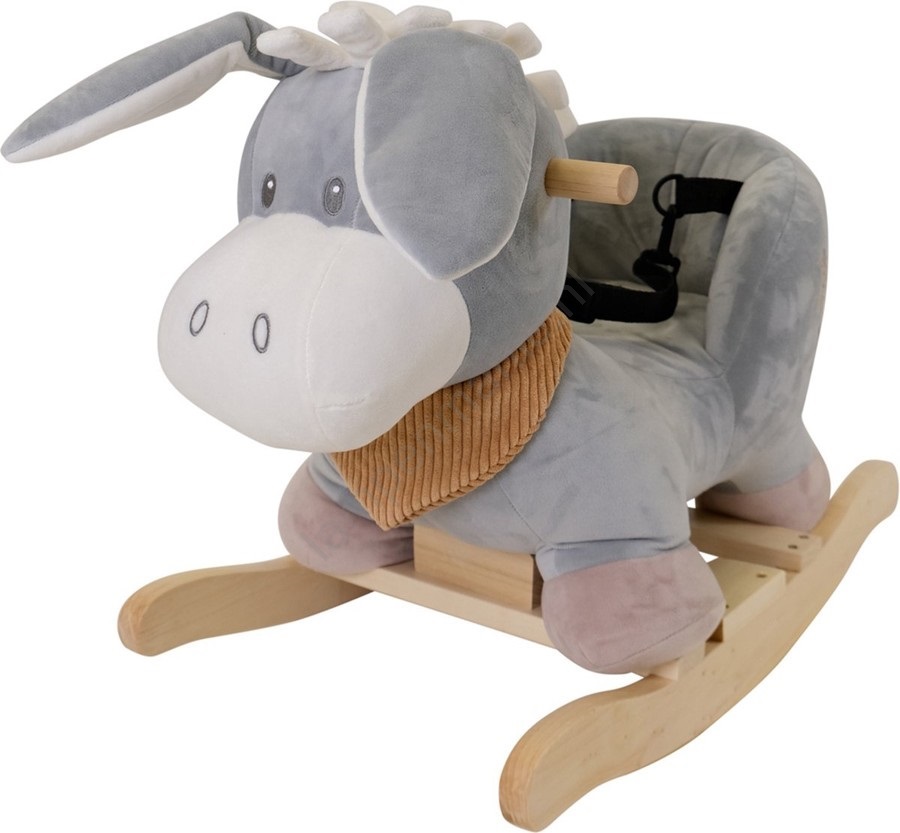 • Prachtige pluche hobbel ezel met houten basis en handgrepen, een speelgoed dat uitnodigt om te schommelen en te knuffelen.