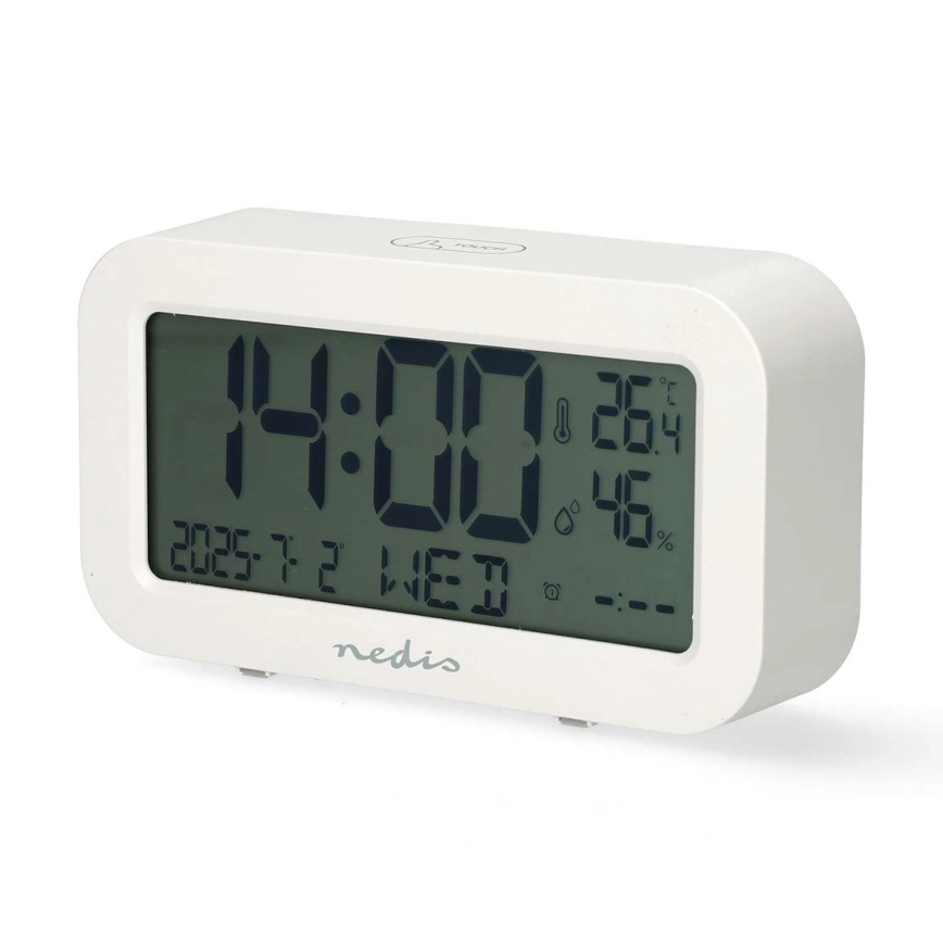 Digitale wekker met thermometer en hygrometer, 2x AA, wit