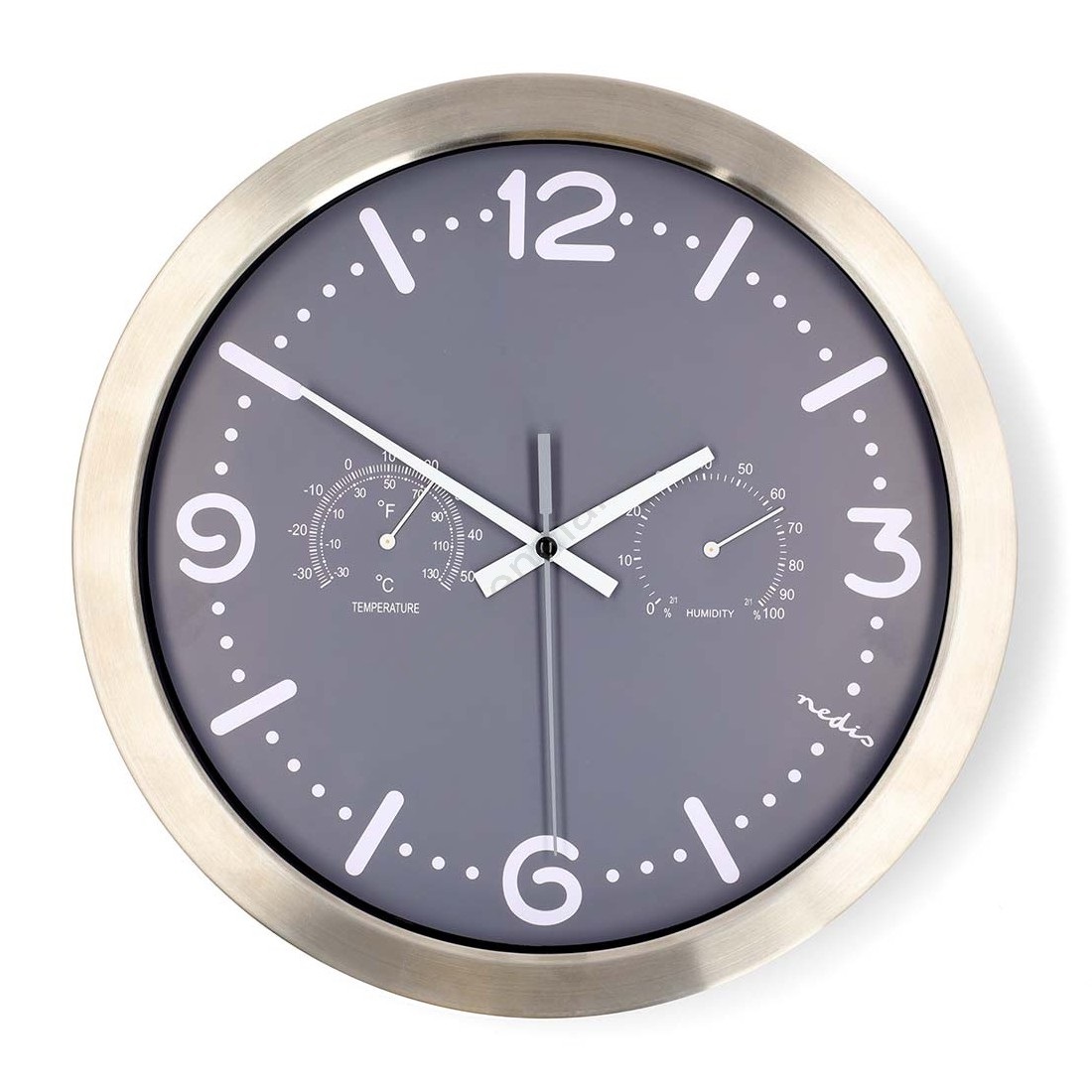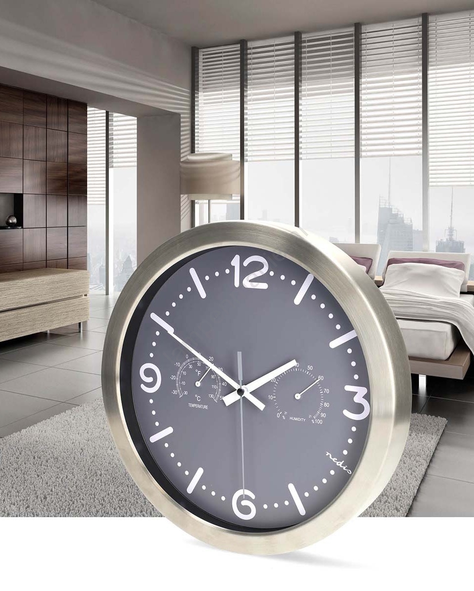 Wandklok met thermometer en hygrometer, Ø 30,5 cm, 1x AA, RVS/grijs