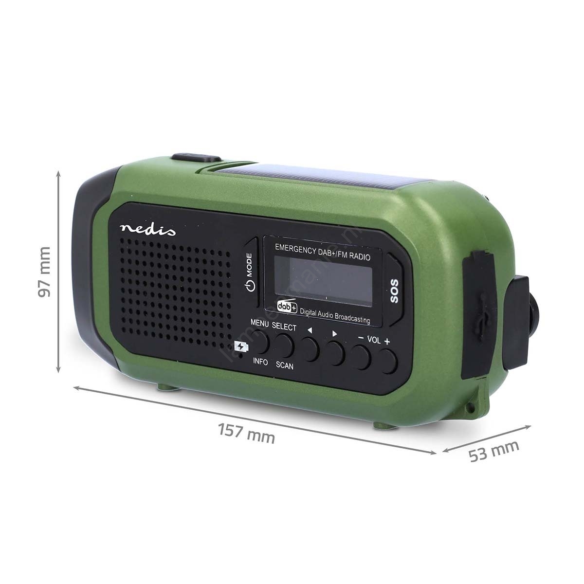DAB+/FM-radio met handopwinding, zonnepaneel en LED-zaklamp 5V/2500 mAh groen/zwart