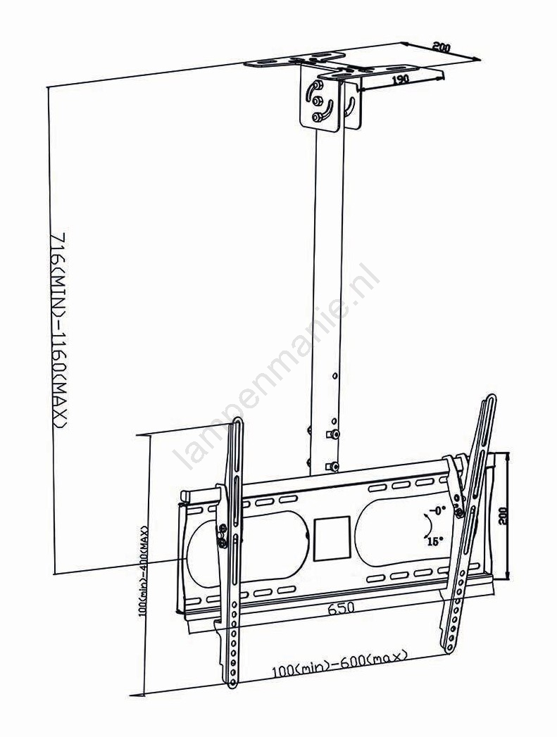 • Plafond TV-montage geschikt voor de meeste televisies met een diagonaal van 42 " tot 65 ".