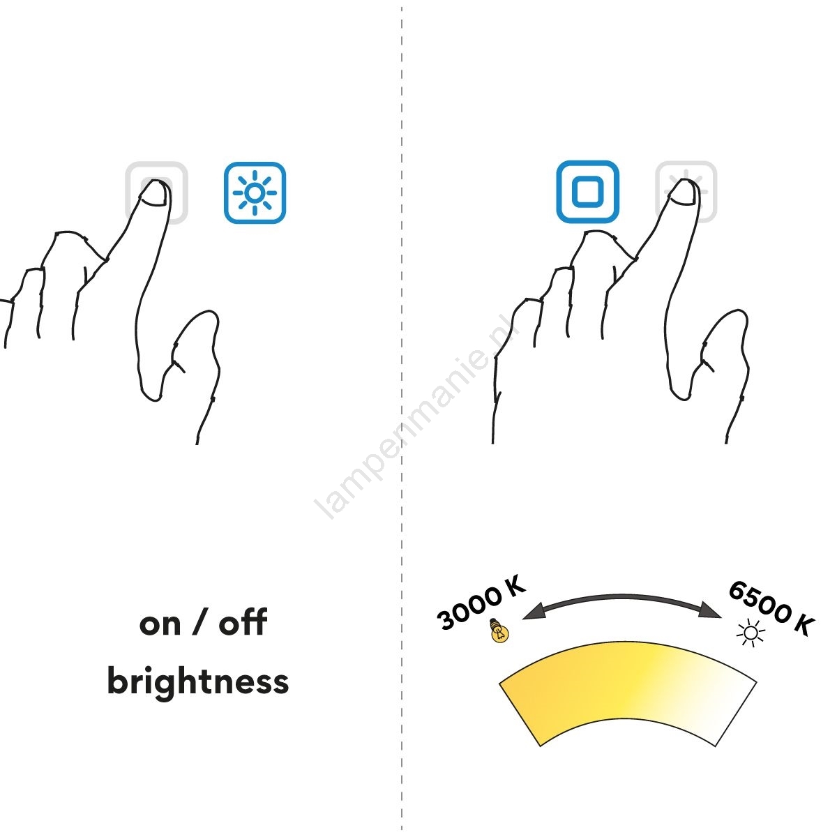 • Traploze regeling van lichtsterkte en kleurtemperatuur.