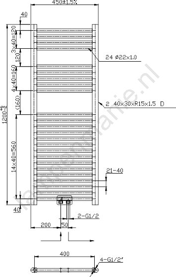 Novaservis - Badkamer handdoekradiator 318W/230V 120x45 cm glanzend chroom recht