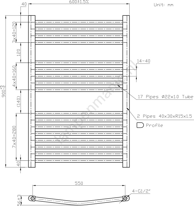 Novaservis - Handdoekradiator voor badkamer 478W/230V 90x60 cm wit, afgerond