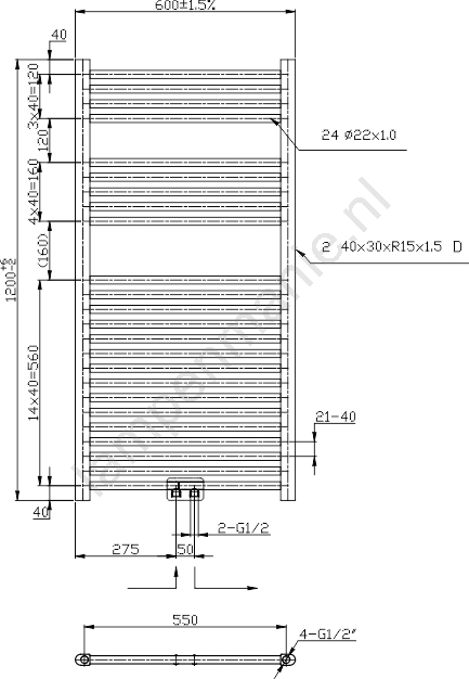 Novaservis - Handdoekradiator voor badkamer laddermodel 644W/230V 120x60 cm zwart recht