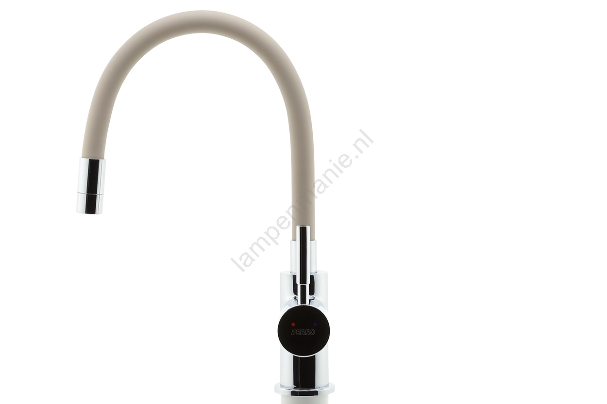FERRO - Kraan voor gootsteen met flexibele arm glanzend chroom/beige