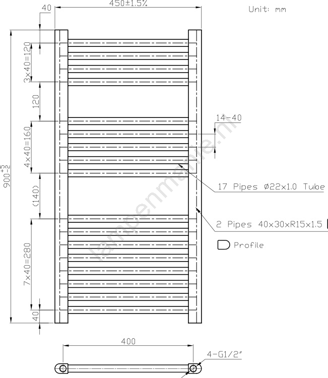 Novaservis - Witte rechte handdoekradiator voor de badkamer 365W/230V 90x45 cm