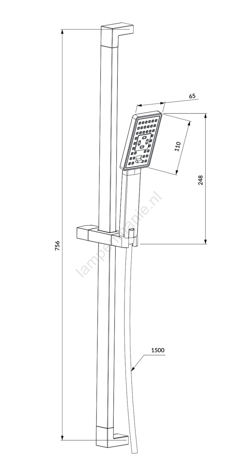• Set bevat: handdouche van messing (3 functies), PVC-gecoate doucheslang, roestvrijstalen douchestang met handdouchehouder.