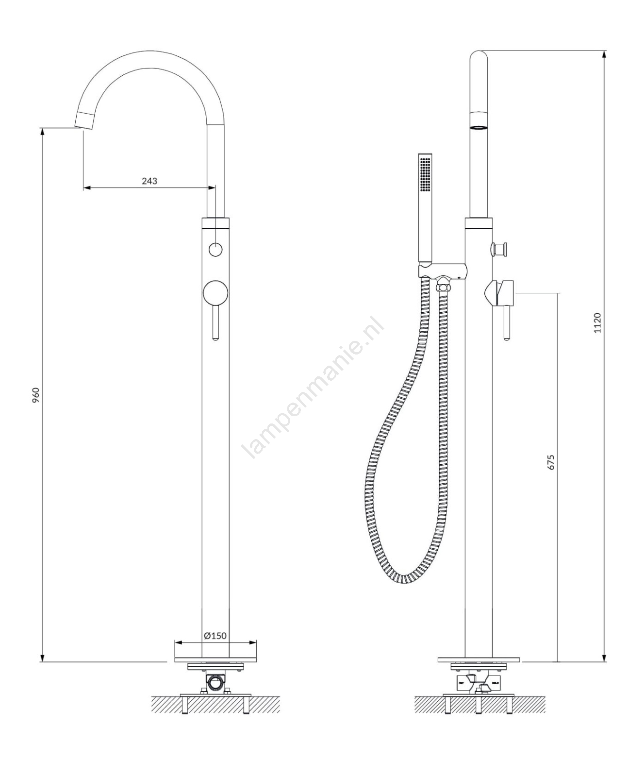 • Set bevat: messing badkraan, messing handdouche (1 functie), roestvrijstalen doucheslang (150 cm), messing handdouchehouder met beschermende inzet.
