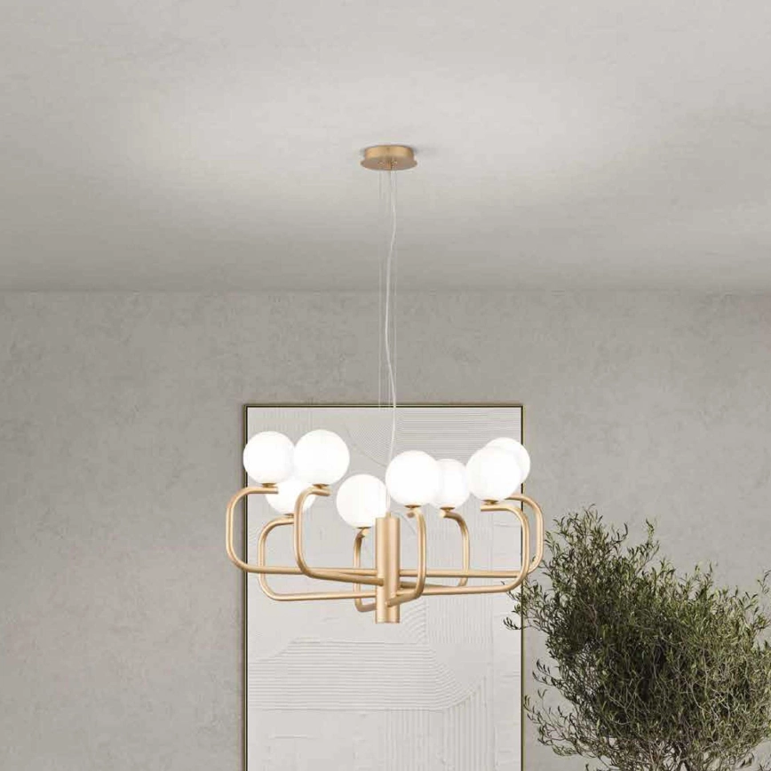 Ondaluce - Hanglamp aan kabel JEPPY 8xG9/7W/230V Ø 78,5 cm goud/wit