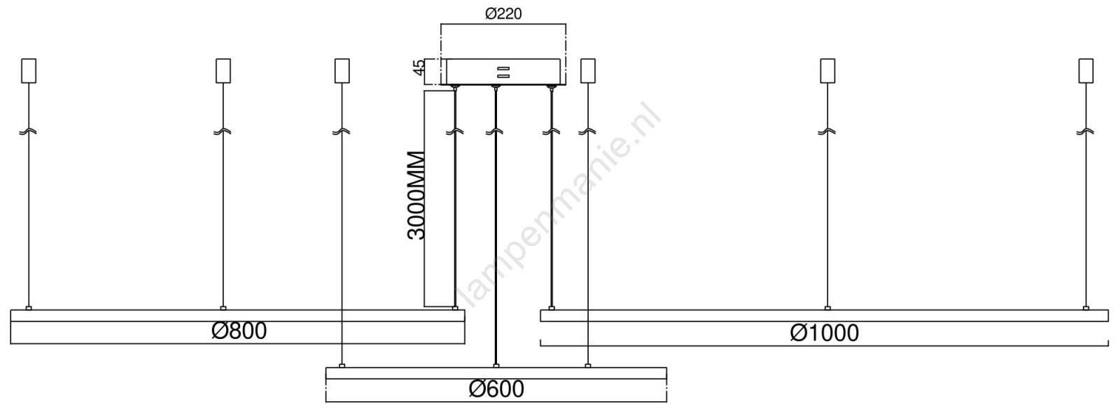 Ondaluce - LED-dimbare hanglamp met kabel SOEL LED/28W/230V + LED/38W + LED/47W Ø 100/80/60 cm goudkleurig