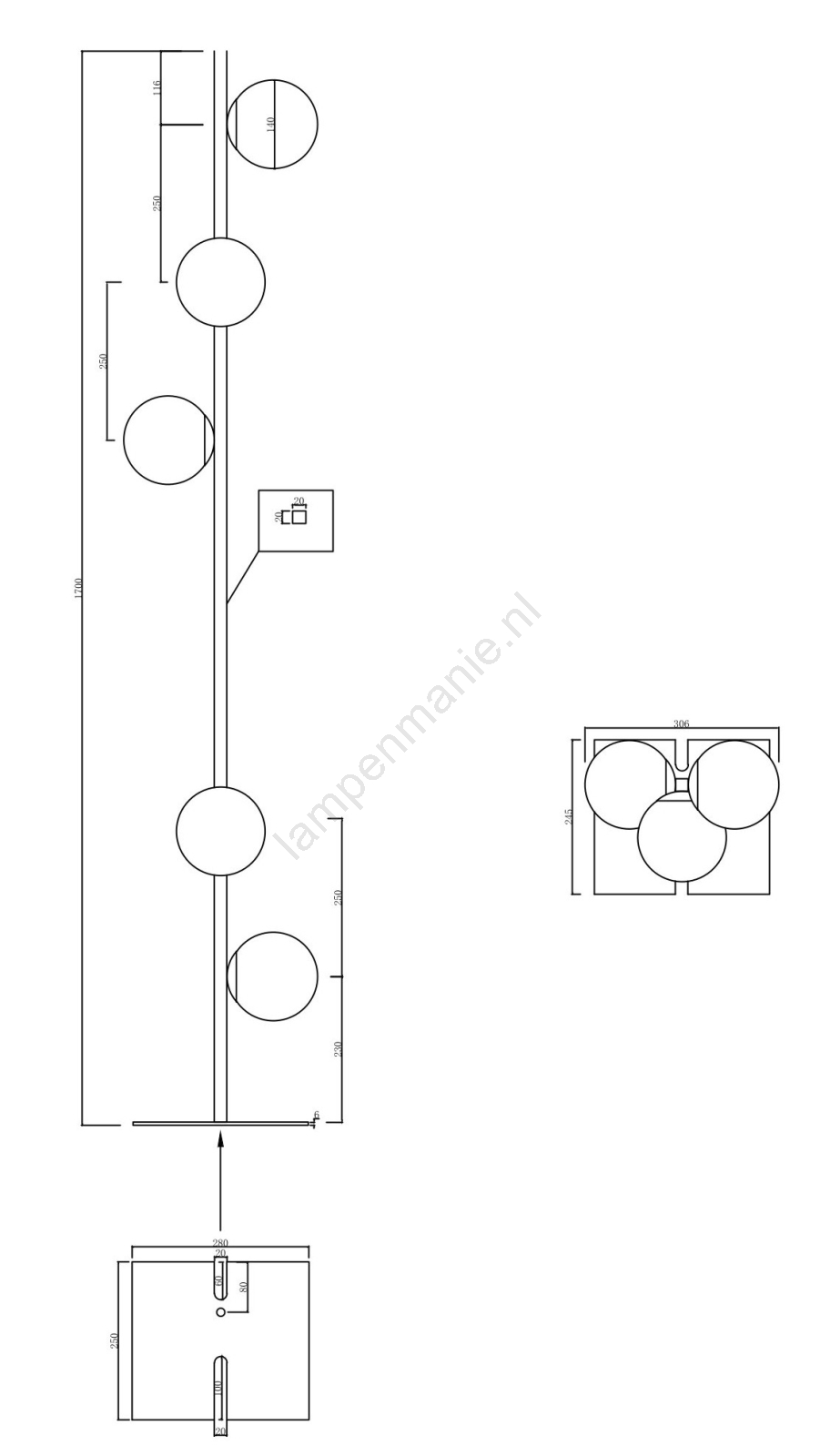 Ondaluce - Vloerlamp MONILE 5xE14/10W/230V rookzwart