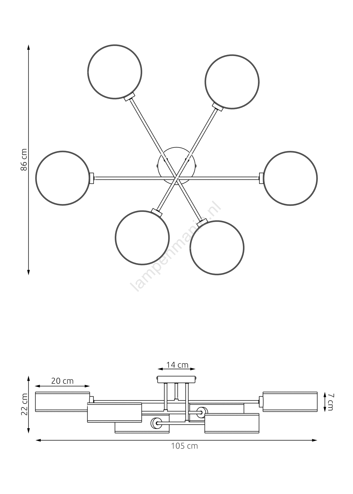 Opbouw-kroonluchter MAGA 6xE14/10W/230V zwart/bruin/grijs kenmerkt een mooi en functioneel ontwerp.  Voor het licht is een lamp met E14 fitting geschikt. Hier kunt u andere lampen tegen voordelige prijzen kopen. U heeft een interessante aanwinst voor uw woning.