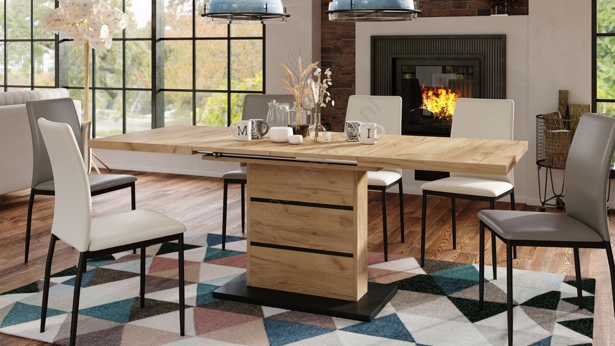 • Uitschuifbare eettafel PAOLO eiken craft/zwart