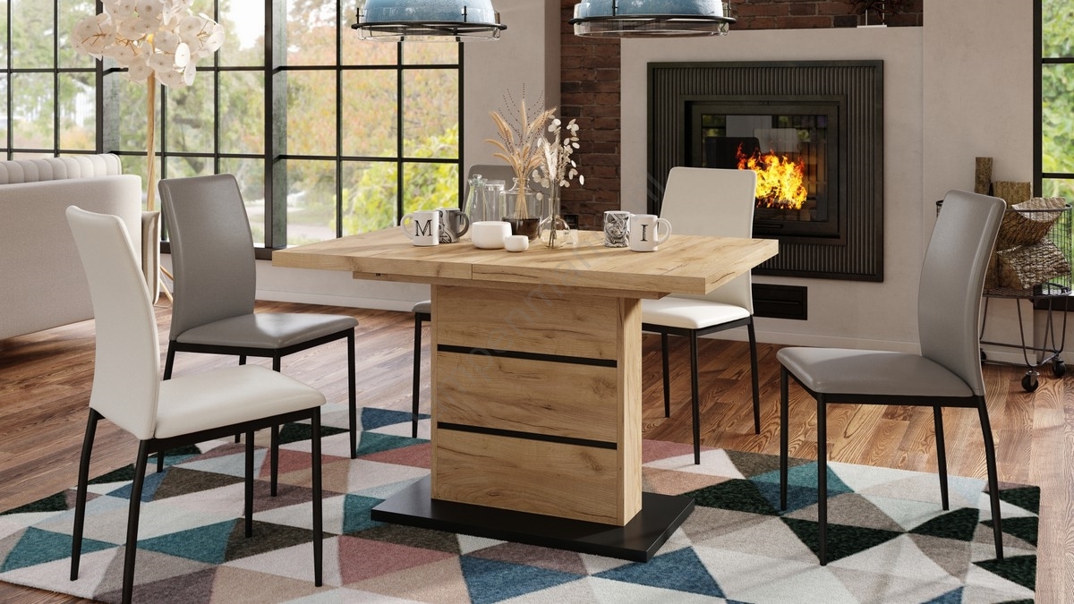 Uitschuifbare eettafel PAOLO eiken craft/zwart