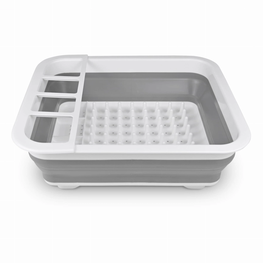 • Het materiaal is siliconen van voedselkwaliteit gecombineerd met een stevig frame — licht, flexibel, maar toch stabiel genoeg om water van de vaat te laten afdruipen.