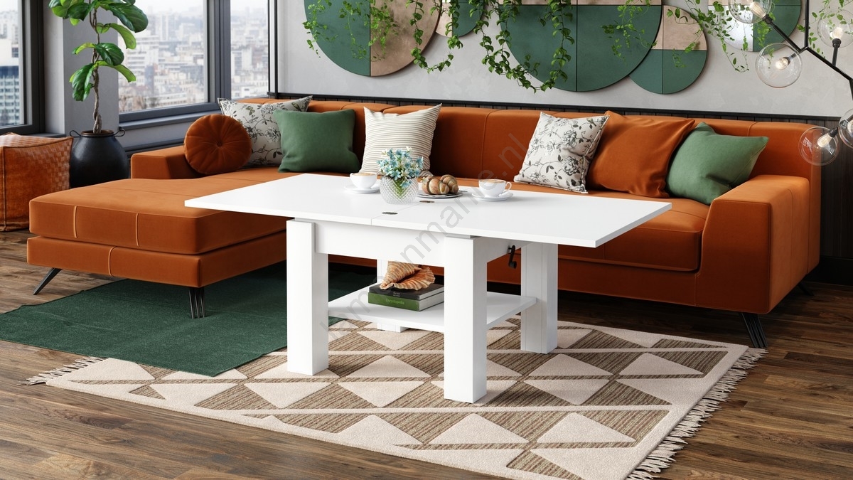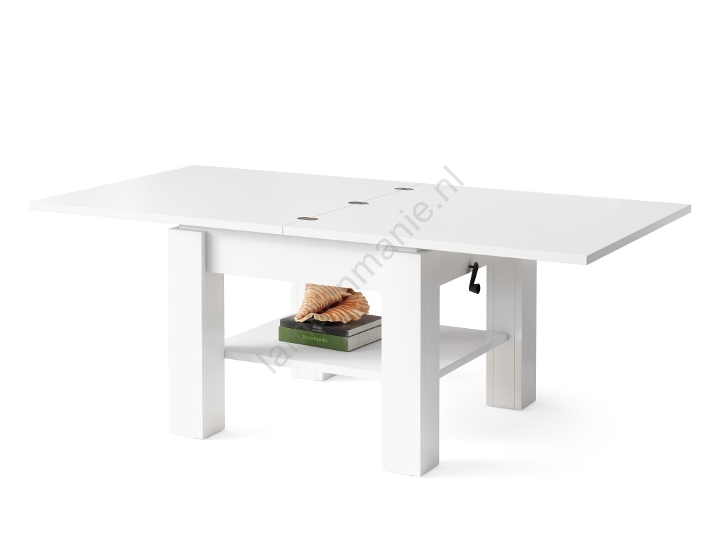 • Uitschuifbare salontafel met liftbaar tafelblad CALEB 75/150x75 cm wit
